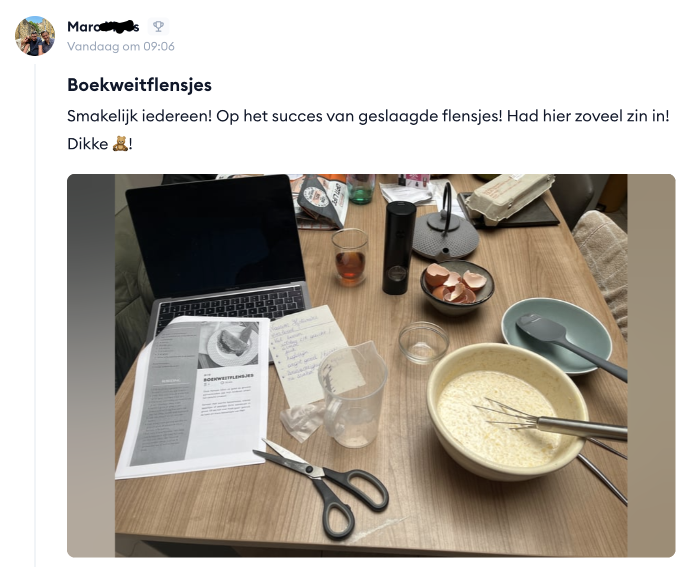 De opgeblazenheid is weg. Ik leerde nieuwe gerechten maken die ik anders nooit zou uitproberen en kwam uit mijn comfortzone, maar niet in te extreme mate dat het mij stress gaf. Ik vond het fijn dat het gefaseerde plan echt op maat te bekijken is!